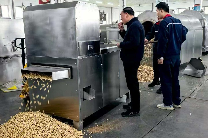 On March 31, 2026, with the gentle spring breeze blowing and the bright sun shining, the customers from Pingdingshan drove to Chike Machinery to visit the workshop equipment and production process of the factory, learn about the working principle of the electromagnetic nutty food processor, and then removed 100kg of peanut kernels from the vehicle to test the peanut kernels-specific electromagnetic nutty food processor. This model can cook 200kg of peanut kernels per pot, with high temperature, heating blocks. It takes about one hour to complete the cooking process. The cooked peanut kernels not only have consistent color and crispy texture, but also meet the customer's requirements for speckled crust. The customers were very satisfied and placed an order on the spot.